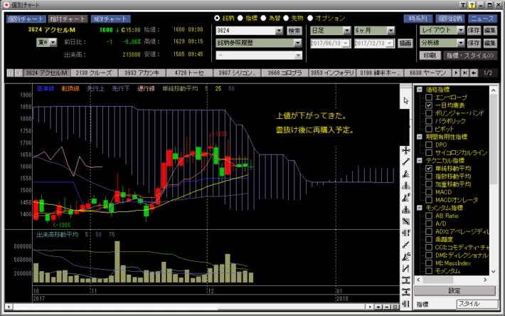 アクセルマーク ほぼ同値撤退。雲抜け or 1月で再購入予定