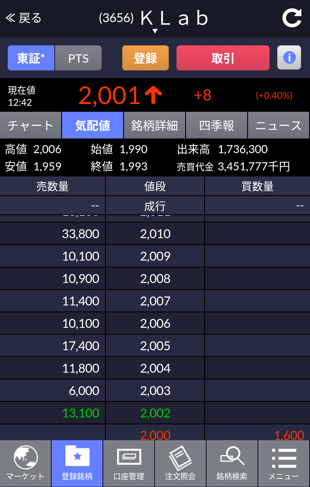 少し違うのは後場で再度2000越えをチャレンジする動きがみられましたので2001円のところに打診買いを行いました。